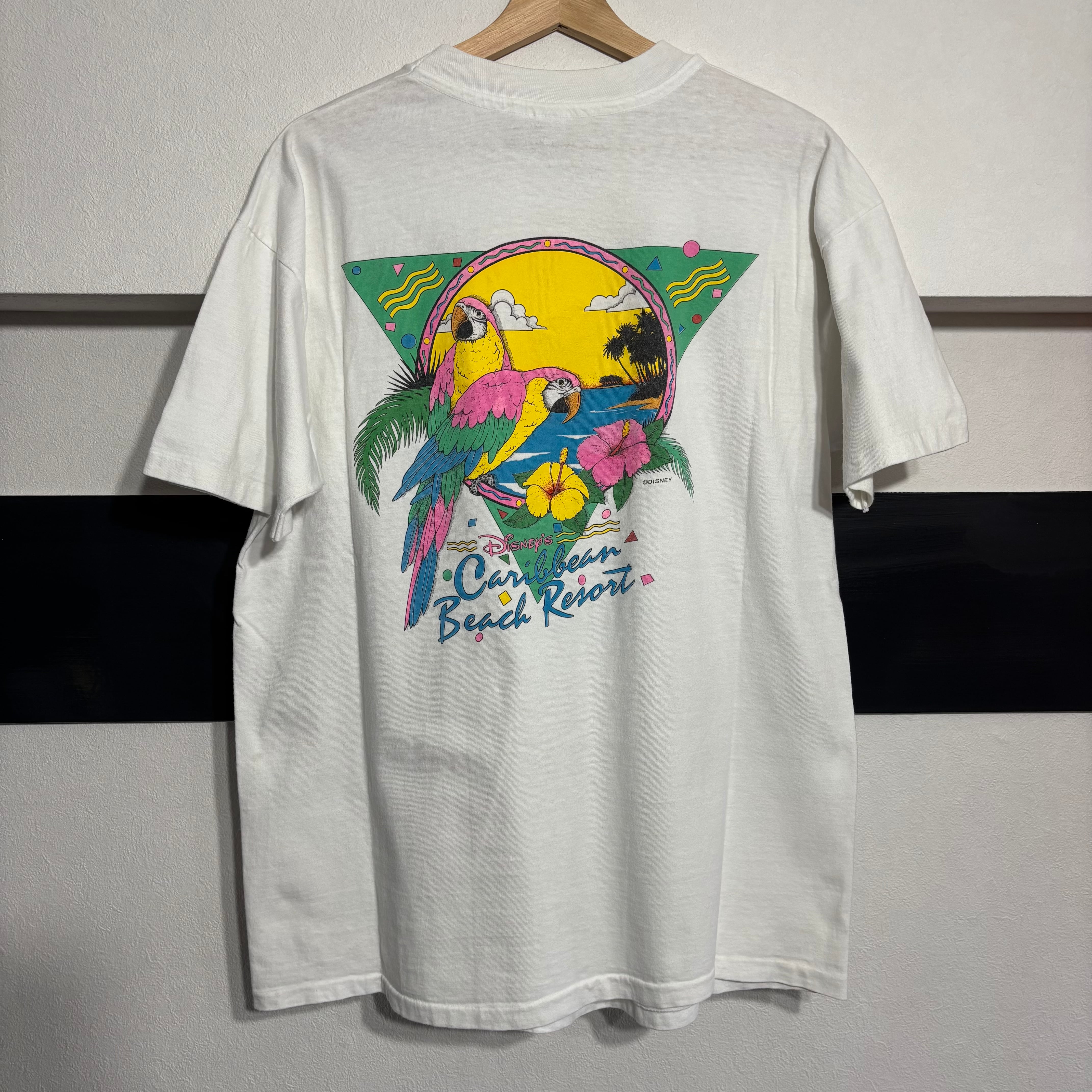【製品概要】 80s色の強いDISNEYホテルのオリジナルTシャツ。カリビアンリゾートの名の通り、カリブ海を彷彿とするデザイン性の高さが魅力!