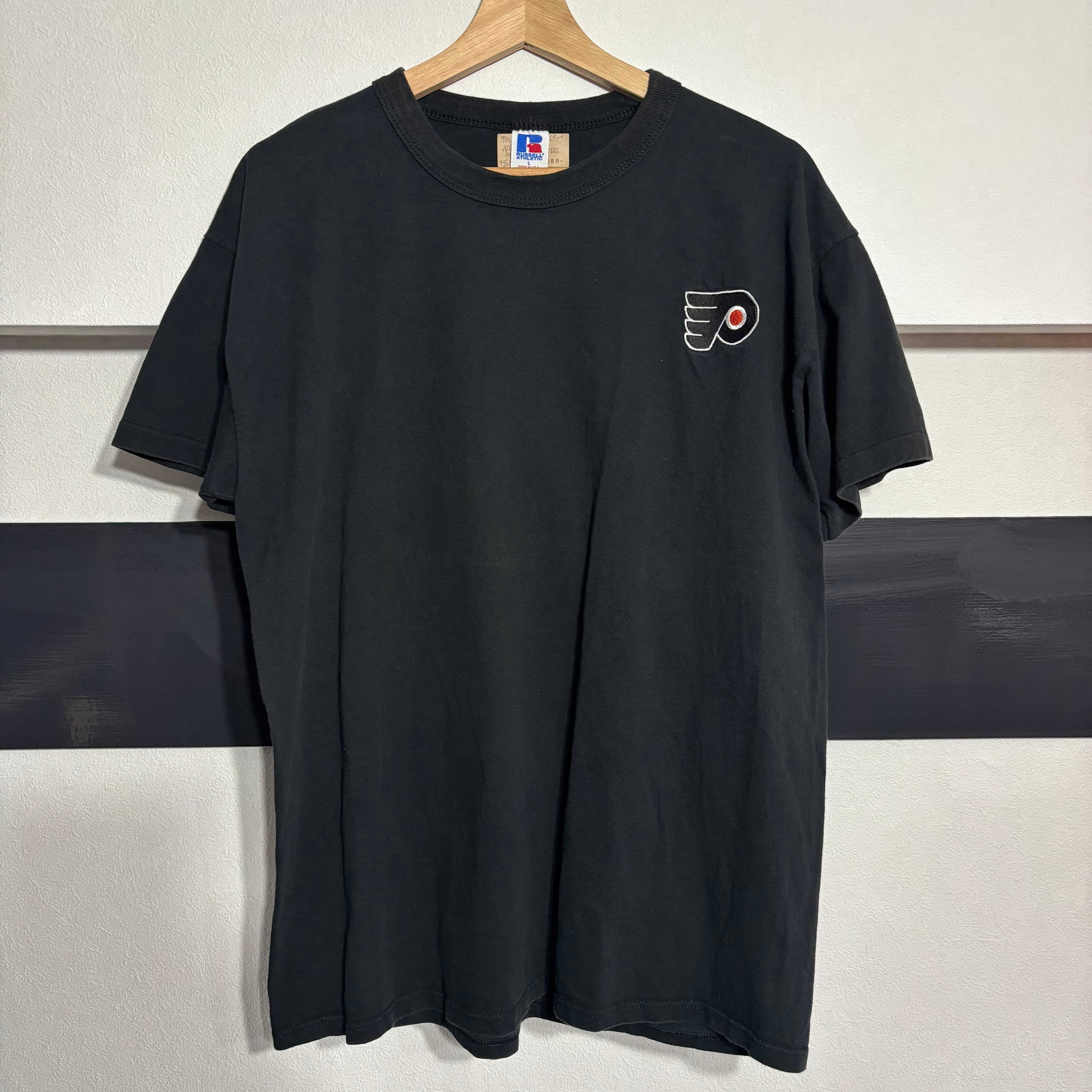 【製品概要】 希少な状態の良い90sのRUSSELLボディー。胸に入るNHLのフィラデルフィアフライヤーズのロゴが良いアクセントになっている一枚。