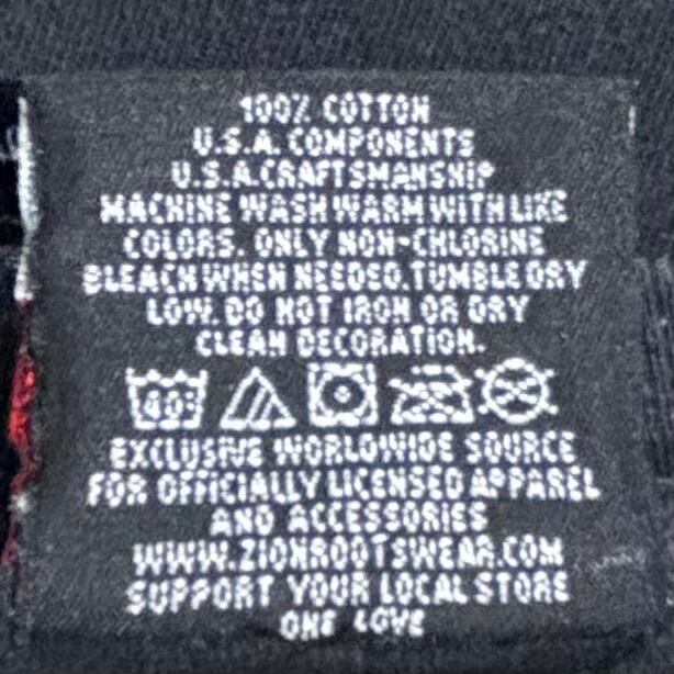 【製品概要】レゲエの伝説的アーティスト、ボブ・マーリーの名曲「GET UP STAND UP」をモチーフにしたプリントTシャツ。2003年コピーライト入り、Zion Rootswearによるオフィシャルライセンス品。フロントにはボブ・マーリーの顔をタイポグラフィで構成した、存在感抜群のデザイン。