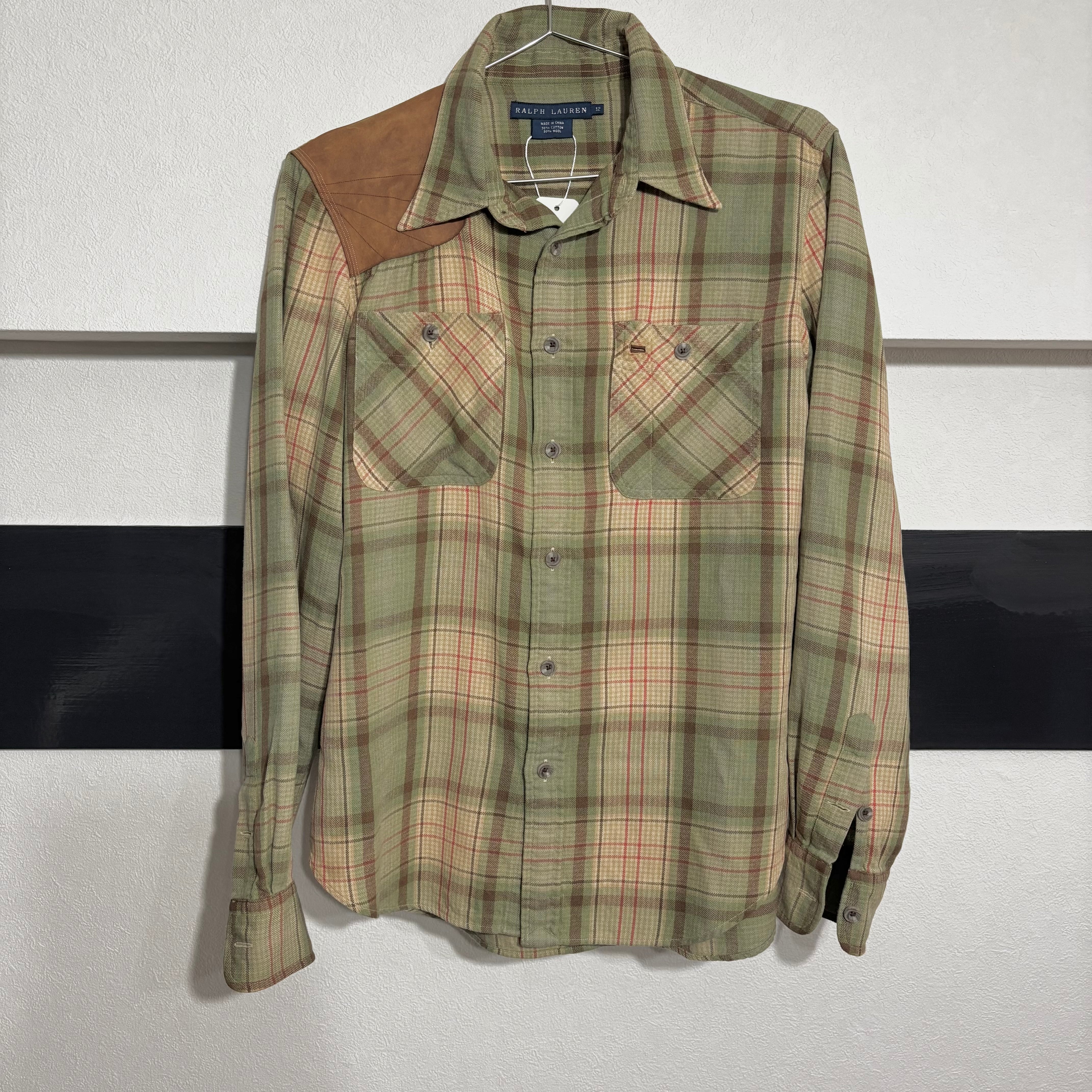 90-00s Ralph Lauren レザー切替チェックシャツ