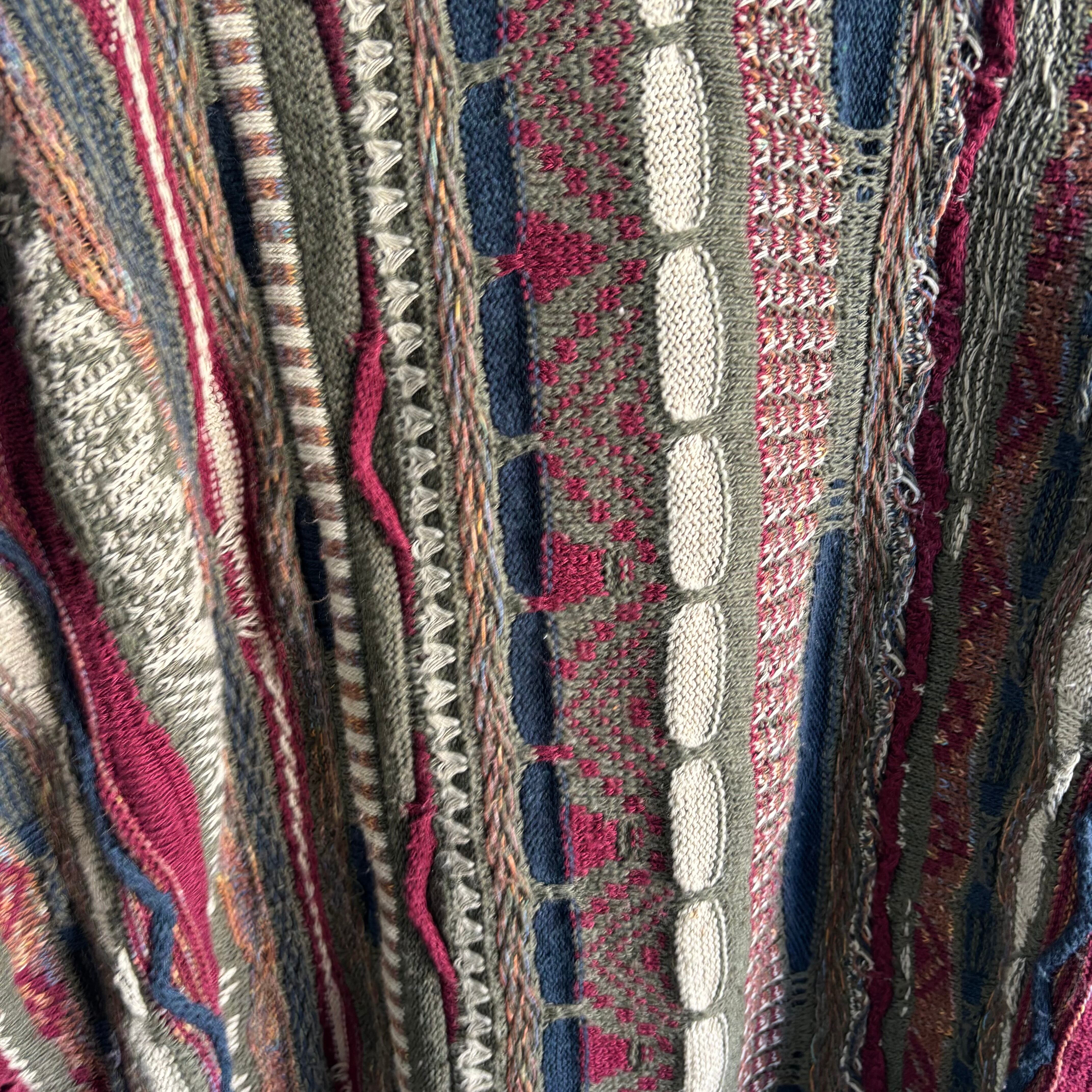 【製品概要】90sスタイルを感じる、立体的に多色の糸を組み合わせて編み込まれた 3D パターンで、COOGI ライクな存在感のある一枚です。
